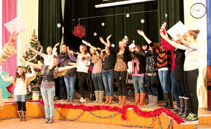 Pierwsza scena rozgrywa się na szkolnym korytarzu, gdzie młodzi już myślą o świątecznej labie. Wśród nich jest Mateusz. – Gram chłopaka, który nie cieszy się z Bożego Narodzenia, ponieważ czeka go wyjazd do „dziury zabitej dechami”, gdzie nie ma internetu, gdzie nie będzie mógł korzystać z telefonu – tłumaczy. I dodaje, że ta rola bardzo do niego pasuje. – Nieco dostosowałem tekst, by był w moim stylu. To będzie częściowo improwizacja.