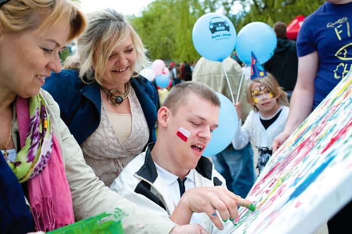 Zdaniem ks. prałata S. Łady zindywidualizowane podejście do osoby w Kościele zawdzięczamy Ojcu Świętemu Janowi Pawłowi II. – To on ogłosił Dzień Chorego, a nie chorych – podkreśla. Stało się to 13 maja 1992 r. Nazwa imprezy w Trąbkach też honoruje każdą osobę chorą. W ciągu ostatnich 20 lat zaszły nieprawdopodobne zmiany w podejściu do niepełnosprawności. – Nieco szybciej dokonało się to na Zachodzie ze względu na szeroki asortyment dostępnego tam sprzętu rehabilitacyjnego – mówi ks. Stanisław. Ale w Polsce sprzęt nie odbiega obecnie od zachodniego. Najważniejsze zmiany dotyczą jednak świadomości. Podczas festynu wolontariusze doskonale wiedzieli choćby to, że muszą podejść z ramą obciągniętą płótnem do niepełnosprawnego chłopca, aby mógł tam przyłożyć swoją dłoń pomalowaną farbą. Wiedzieli, bo pracują z takimi osobami na co dzień. Wrażliwość i umiejętność przewidywania potrzeb osoby niepełnosprawnej wzrasta na szczęście w całym naszym społeczeństwie. Wokół jednego ze stoisk – ruch. To tutaj co chwila któreś z dzieci zamienia się w kotka lub odchodzi z namalowanym na policzku serduszkiem – to dziewczynki – lub biało-czerwoną flagą kibica – to głównie chłopcy.