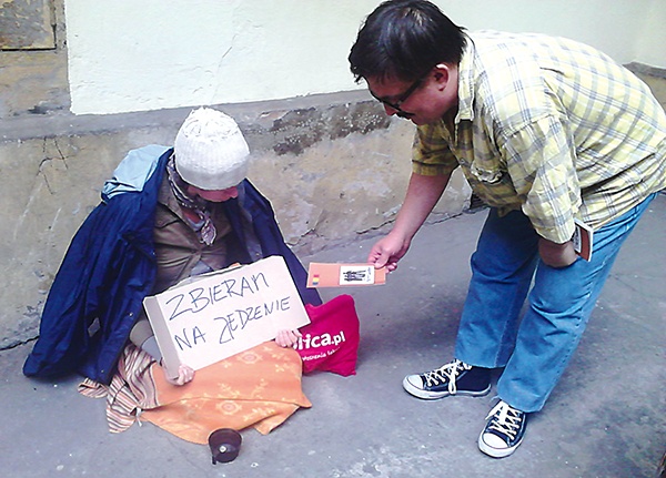 K.G.: Kościół i zakony od zawsze kojarzone są z dobroczynnością, a prawdopodobieństwo, że ludzie wychodzący z Mszy św. dopiero co słyszeli o byciu dobrym i pomaganiu potrzebującym jest duże. Warto więc to wykorzystać, mówiąc, że od wczoraj nic się nie jadło i prosząc o złotówkę na bułkę. Ostatnio mieliśmy do czynienia z pewną starszą i bardzo przedsiębiorczą kobietą, która żebrała przy jednym z kościołów w Nowej Hucie. Ludzie mają tam dobre serca, a ona zobaczyła w tym dobry biznes.