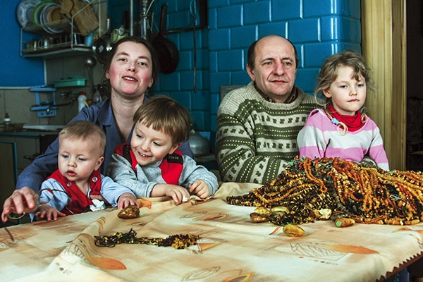 Bziukiewiczowie bursztyniarstwem zajmowali się od zawsze. Ojciec Zdzisława, Stanisław (zmarł w 2009 r.), toczył bursztyn na tradycyjnym kółku, czyli kołowrotku, oraz na tokarkach zrobionych z radzieckiego kombajnu kuchennego. Proste, ale dobre i niezawodne były to maszyny. Kilka lat temu padły łupem złodziei. Zdzisławowi pozostał drewniany kołowrotek po ojcu. Używa go do dziś. Kiedy rodzice przeprowadzili się do Ostrołęki, Zdzisław, który pozostał w Wachu, przejął po ojcu warsztat. Mieszkał sam i wyglądało na to, że zakochany jest tylko w bursztynie. – To niesamowite uczucie – opowiada. – Biorę do ręki coś, co wygląda jak brudny kamień i od razu wiem, że to nie kamień, a bursztyn. Jest ciepły, ma charakterystyczną, chropowatą powierzchnię i jest lżejszy od kamienia. Dziwnie się człowiekowi robi, kiedy pomyśli, że ta bryłka ma ponad milion lat.