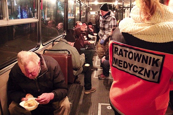 Na horyzoncie pojawia się czerwony ikarus. Na twarzach kilku czekających mężczyzn pojawia się uśmiech. – Dobry wieczór, panowie! – wita wszystkich Dorota Grzymała, ratownik medyczny. – Zapraszamy na zupę. Kolejne osoby z miską zupy w rękach wypełniają wysłużony pojazd. – Przykro mi, ale z piwkiem pan do środka nie wejdzie – upomina jednego z mężczyzn pani Dorota. Po chwili mężczyzna wraca bez trunku i ustawia się w kolejce po ciepły posiłek. – Gdańsk jest bardzo dobrze zorganizowany, jeśli chodzi o placówki, w których bezdomni mogą otrzymać pomoc. Jednak z doświadczenia wiemy, że są osoby, które nie chcą korzystać z pomocy stacjonarnej, wtedy najlepiej sprawdzają się tzw. rozwiązania uliczne, jak streetworking czy taki „Autobus SOS” – wyjaśnia Wojciech Bystry, prezes Towarzystwa Pomocy im. św. Brata Alberta.