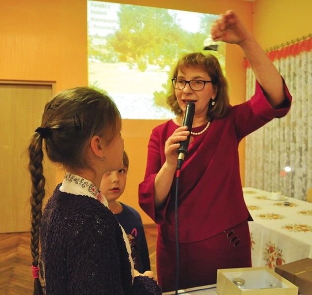 Ciekawostki na temat mojej miejscowości zaczęłam zbierać jeszcze w szkole średniej, nie wiedząc, czy się to kiedykolwiek przyda. To są zupełnie inne perły niż te, które mam na szyi – zapowiedziała Walburga Węgrzyk, autorka prezentacji. Bogatym źródłem dziejów obu wiosek była dla niej licząca ok. 180 lat kronika szkoły w Roszowicach. Jej autorzy prócz wydarzeń szkolnych opisywali ważne wydarzenia lokalne. Cenne były też zapiski i opowieści starszych mieszkańców.
