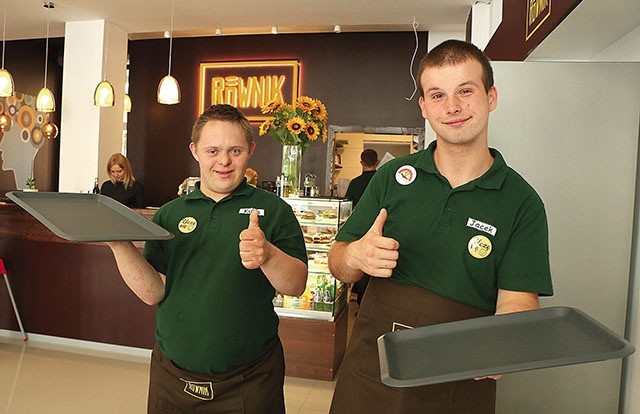 Jacek ma 20 lat i cierpi na upośledzenie umysłowe w stopniu lekkim. – Lubię swoją pracę i nie sprawia mi ona żadnej trudności. Kiedy pierwszy raz chwyciłem za tacę kelnerską w Cafe Równik, byłem nieco przejęty, ale szybko mi przeszło, bo usługiwanie ludziom w naszym lokalu sprawia mi wielką przyjemność – mówi. Wspomina, że nie mógł się doczekać otwarcia kawiarni, ponieważ dla niego nadszedł nowy etap życia. – To już jest poważna robota. W wakacje mamy mniejszy ruch, ale zdarzają się intensywniejsze godziny. Wtedy też dajemy radę. Podchodzimy do pracy na luzie. Na szczęście nie zdarzyło mi się jeszcze nic wylać czy potknąć się – opowiada. Dodaje, że ma „wypasiony” fartuch i koszulkę, co mu się w tej pracy także bardzo podoba.