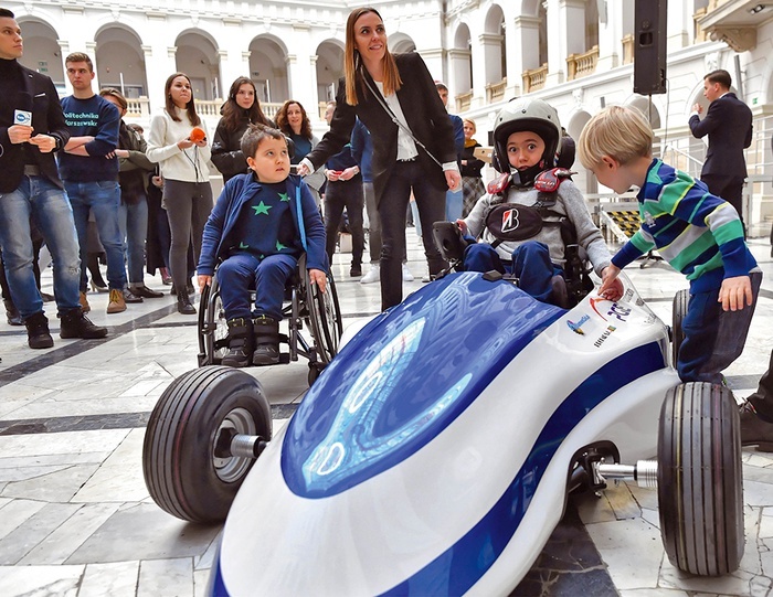 Prowadziło się bardzo łatwo, wystarczyło użyć joysticka. Czułem się świetnie, nie wiem, jak to opisać, to niesamowita radość! – mówi Maks, dzieląc się wrażeniami z pierwszej jazdy, która odbyła się 6 grudnia. Pojazd waży 110 kg, ma twarde zawieszenie, a jego aerodynamiczny kształt przypomina samochody biorące udział w wyścigach Formuły 1 w latach 60. XX w. Do przyśpieszania, hamowania oraz skręcania wystarczą płynne ruchy nadgarstkiem. Nogi kierowcy nie biorą udziału w prowadzeniu pojazdu. Skonstruowanie bolidu było możliwe dzięki dwuletniej pracy studentów Politechniki Warszawskiej.